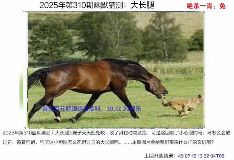 310期图片猜测(大长腿)【开:發00】 狗子天天四处咬,咬了其它动物就跑,可是这回咬了小心眼的马,马怎么会放过它,追着狗跑,狗子这小短腿怎么跑得过马的大长腿呢。......本期图片会给我们带来什么样的玄机呢? 解:狗、马解后肖马羊猴鸡狗猪幽默猜测推荐六肖:马羊狗猪猴鸡本期猜测看好十码:24.36.35.47.20.32.07.31.10.33点击注册30.cc娱乐城3090.com大额无忧 |